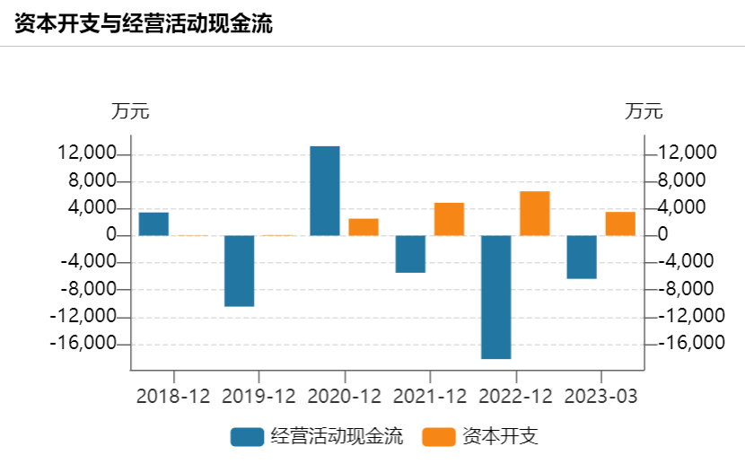 应收账款高企,对*ST左江现款流影响较大。2020年至2022 年,公司谋划步履产生的现款流量净额分辩为1.32亿元、-5473.89 万元、-1.82亿元,2021年、2022 年分辩同比下滑141.52%、232.5%。至本年一季度末,*ST左江货币资金为6752.78万,较2022年末减少53.62%,主要原因是公司资金开支较多。